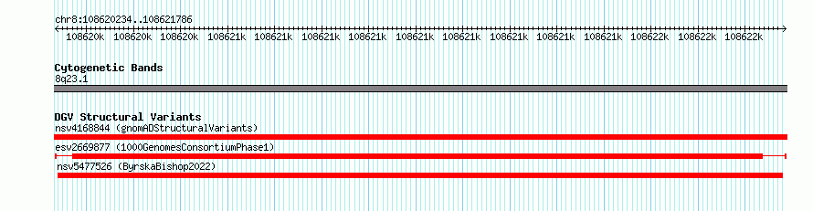| Cytoband | 8q23.1 |
