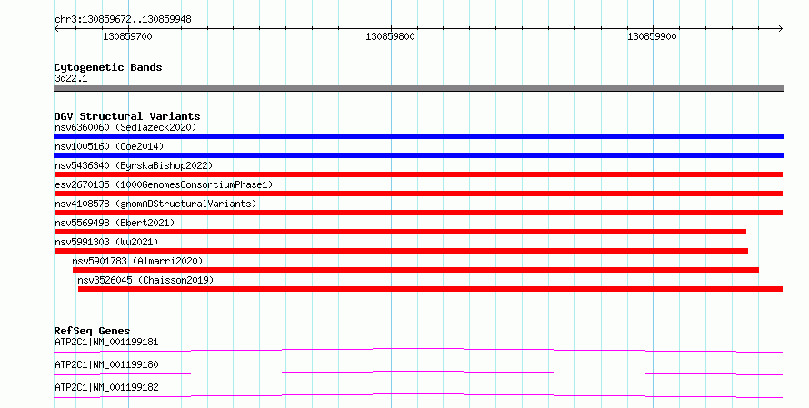 Variant DetailsVariant: esv2670135| Internal ID | 9936240 | | Landmark | | | Location Information | | | Cytoband | 3q22.1 | | Allele length | | Assembly | Allele length | | hg38 | 277 | | hg19 | 277 |