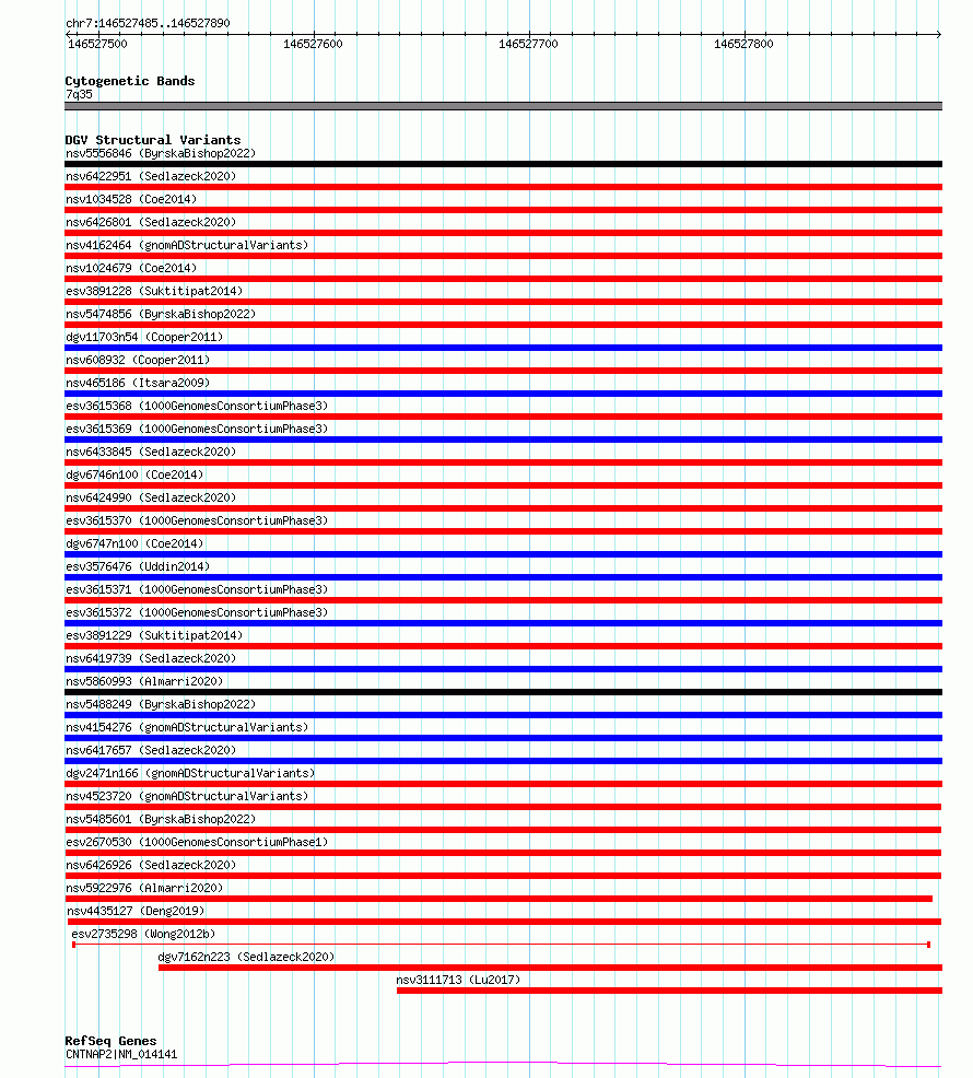 Variant DetailsVariant: esv2670530| Internal ID | 9936635 | | Landmark | | | Location Information | | | Cytoband | 7q35 | | Allele length | | Assembly | Allele length | | hg38 | 406 | | hg19 | 406 |