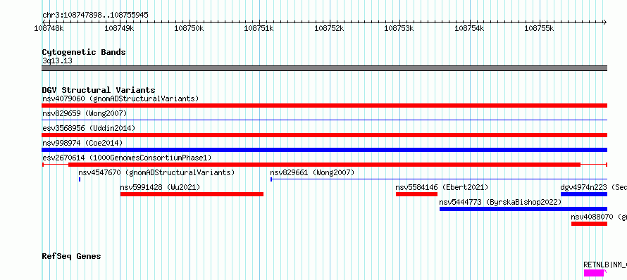Variant DetailsVariant: esv2670614 | Internal ID | 9936719 | | Landmark | | | Location Information | | | Cytoband | 3q13.13 | | Allele length | | Assembly | Allele length | | hg38 | 8048 | | hg19 | 8048 |