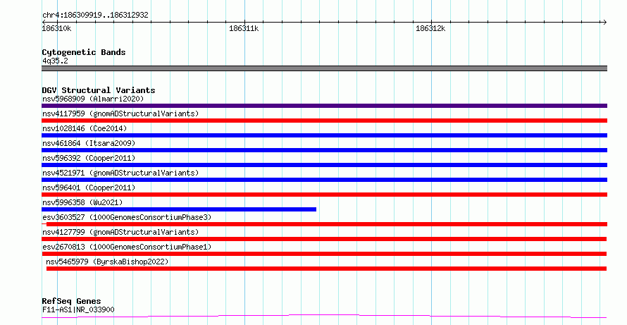 Variant DetailsVariant: esv2670813| Internal ID | 9936918 | | Landmark | | | Location Information | | | Cytoband | 4q35.2 | | Allele length | | Assembly | Allele length | | hg38 | 3014 | | hg19 | 3014 |