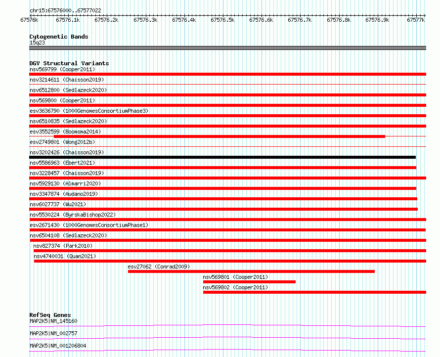 | | Variant Type | CNV deletion | | Copy Number | | | Allele State | | | Allele Origin | | | Probe Count | | | Validation Flag | | | Merged Status | M | | Merged Variants | | | Supporting Variants | essv6182400, essv5397052, essv6197666, essv5888651, essv5664949, essv5803773, essv5939562, essv5613711, essv6224134, essv5994987, essv6250750, essv6339310, essv6485165, essv6461646, essv6150544, essv5454895, essv5835636, essv6054782, essv6478404, essv6234189, essv6373526, essv5555423, essv5785435, essv5726092, essv6593007, essv5534709, essv5900878, essv5933748, essv5501870, essv6354816, essv5405459, essv6410886, essv6097650, essv5717594, essv5664941, essv5438861, essv6242069, essv6354353, essv6419757, essv6299977, essv6330256, essv5489883, essv6309132, essv5853491, essv5665461, essv5538246, essv5404672, essv6471813, essv5491589, essv5474123, essv5756649, essv5463853, essv5855946, essv6396532, essv6173227, essv6246260, essv6097065, essv5513336, essv5580315, essv5748389, essv6193124, essv6430823, essv5865871, essv6161115, essv6479714, essv5618993, essv6476390, essv5894119, essv6036533, essv6197254, essv5532424, essv5629412, essv6533995, essv6074070, essv5524107, essv5623766, essv5556536, essv5869383, essv6178900, essv6178545, essv6522270, essv5893078, essv6509332, essv6177244, essv5449090, essv5675709 | | Samples | HG00249, HG00671, HG00187, NA18565, HG01389, HG00315, NA20813, HG00367, NA18606, HG00449, HG01461, HG00261, NA18988, NA12341, HG00271, HG01350, HG00501, HG00448, NA18558, NA18547, NA18574, HG00346, HG00247, NA19720, NA19651, HG01072, NA19471, HG01440, HG00427, HG00118, NA19189, HG00326, HG00323, NA18638, HG01353, HG00543, HG00313, HG01136, NA18544, HG00560, HG00183, HG01187, NA19070, HG00557, HG00328, HG00428, NA19462, HG00701, HG00533, HG00583, NA18637, NA12718, NA18534, HG00651, HG00684, HG00704, HG00463, NA19469, NA18536, NA18546, NA18632, HG00476, NA18543, NA19434, HG00366, NA18628, NA19072, NA18950, HG00580, HG00357, HG00638, HG00278, HG00607, HG00256, NA19085, HG00513, HG00259, NA19472, HG00421, HG00174, HG00280, HG00343, HG00472, NA19004, HG00180, HG00581 | | Known Genes | MAP2K5 | | Method | Merging | | Analysis | No reference, merging analysis | | Platform | Merging | | Comments | High quality site | | Reference | 1000_Genomes_Consortium_Phase_1 | | Pubmed ID | 23128226 | | Accession Number(s) | esv2671430