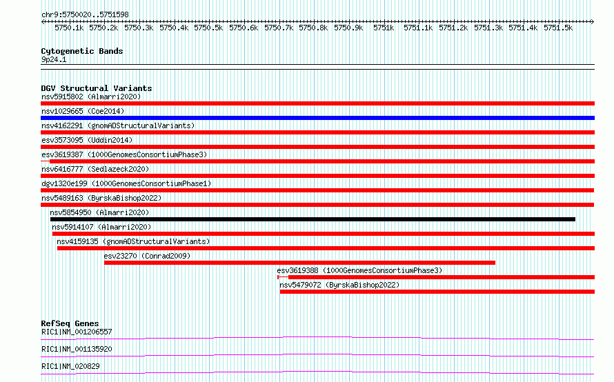 Variant DetailsVariant: esv2671463| Internal ID | 9937568 | | Landmark | | | Location Information | | | Cytoband | 9p24.1 | | Allele length | | Assembly | Allele length | | hg38 | 1579 | | hg19 | 1579 |