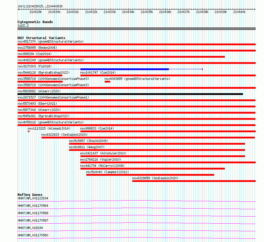 Variant DetailsVariant: esv2671527| Internal ID | 9937632 | | Landmark | | | Location Information | | | Cytoband | 1q32.2 | | Allele length | | Assembly | Allele length | | hg38 | 12825 | | hg19 | 12825 |