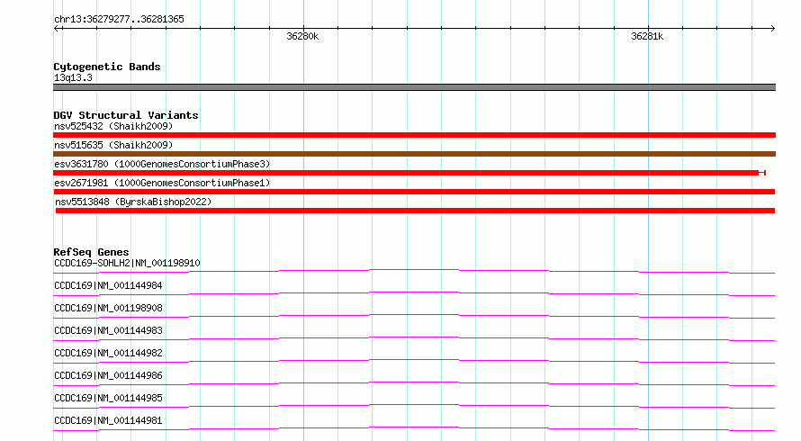 Variant DetailsVariant: esv2671981| Internal ID | 9938086 | | Landmark | | | Location Information | | | Cytoband | 13q13.3 | | Allele length | | Assembly | Allele length | | hg38 | 2089 | | hg19 | 2089 |