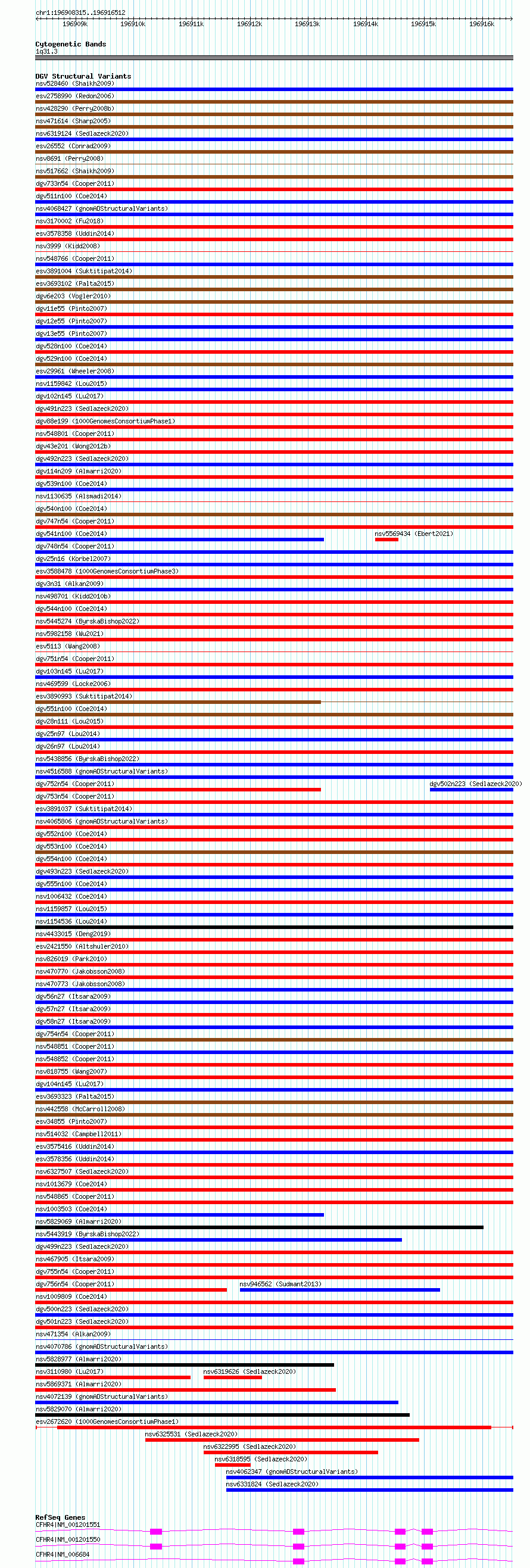 Variant DetailsVariant: esv2672620| Internal ID | 9938725 | | Landmark | | | Location Information | | | Cytoband | 1q31.3 | | Allele length | | Assembly | Allele length | | hg38 | 8198 | | hg19 | 8198 |