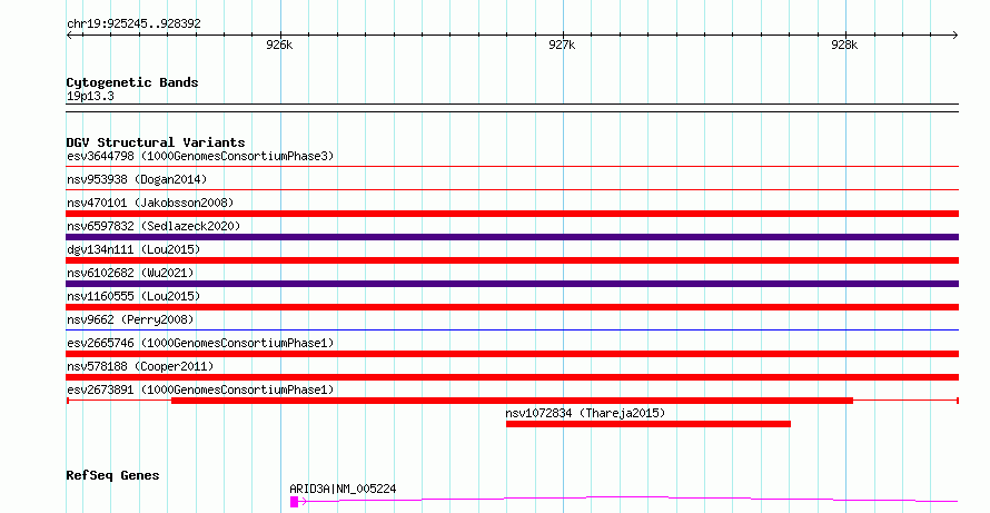 Variant DetailsVariant: esv2673891 | Internal ID | 9939996 | | Landmark | | | Location Information | | | Cytoband | 19p13.3 | | Allele length | | Assembly | Allele length | | hg38 | 3148 | | hg19 | 3148 |