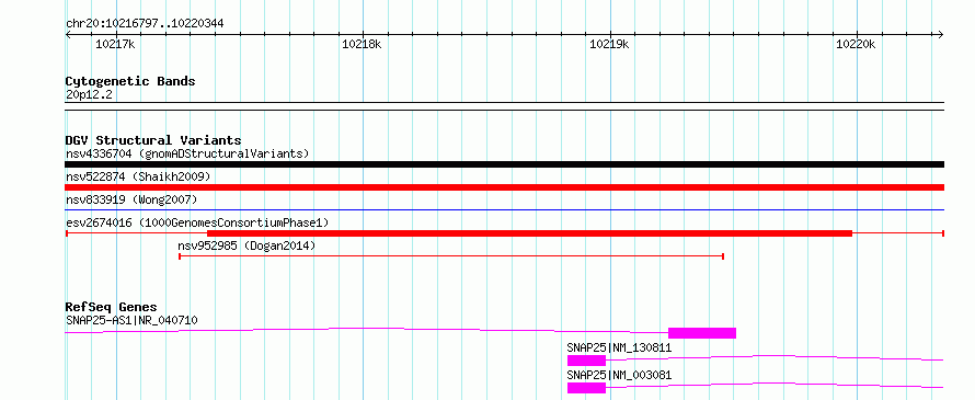 | | Variant Type | CNV deletion | | Copy Number | | | Allele State | | | Allele Origin | | | Probe Count | | | Validation Flag | | | Merged Status | M | | Merged Variants | | | Supporting Variants | essv5706511, essv5717568, essv5829952, essv6053651, essv6044822, essv6572134, essv5747387, essv6032169, essv5478862, essv5586616, essv5457239, essv6305689, essv5858082, essv5751140, essv5743058, essv5740482, essv6493986, essv6095894, essv6253256, essv5772370, essv6153144, essv6154587, essv6523443, essv6280515, essv6173369, essv5799020, essv5917901, essv5421636, essv6090723, essv6250386, essv6233466, essv6063534, essv5834371, essv6338673, essv5433233, essv5561820, essv6535560, essv5773056, essv6139877, essv6362830, essv6290632, essv5960454, essv6500208, essv5808920, essv5764737, essv6167073, essv6269395, essv5838953, essv5968440, essv6101365, essv6305652, essv5662525, essv5663699, essv6215905, essv5403159, essv6429614, essv6056212, essv5894710, essv5938025, essv5923247, essv6471295, essv5697454, essv5580616, essv5900965, essv6013852, essv6561197, essv5444141, essv5631938, essv5867502, essv5489388, essv5988287, essv5448579, essv5989230, essv5591449, essv6345129, essv5706795, essv6431088, essv5483124, essv6231747, essv6032893, essv6456365, essv5701292, essv6216569, essv6195678, essv5715733, essv5955010, essv6163245, essv5712807, essv6523622, essv5982391, essv5951441, essv5886680, essv5837493, essv5717157, essv6504243, essv6580464, essv6589932, essv6062559, essv6114071, essv5950752, essv6063953, essv5448092, essv6539388, essv5814286, essv6597221, essv6398933, essv5562025, essv6255332, essv5718474, essv6248172, essv5993318, essv6386502, essv5694674, essv6428145, essv6098294, essv5780839, essv5698676, essv5726530, essv5779918, essv6402315, essv6205781, essv5486387, essv5837458 | | Samples | NA19394, HG00114, HG00231, NA19397, HG00249, NA19466, NA19399, NA19332, HG00100, HG00257, NA19350, NA19359, HG00103, NA19393, NA19377, HG00115, HG00150, NA19443, HG00261, NA19446, NA19374, NA19396, HG00138, HG00127, NA19381, NA19373, NA19379, NA19382, NA19448, NA19313, HG00247, NA19384, HG00243, HG00158, NA19404, HG00139, HG00120, NA19383, HG00106, HG00236, HG00156, HG00262, HG00232, NA19372, NA19385, NA19471, HG00160, HG00118, HG00159, NA19456, NA19445, HG00253, NA19451, HG00264, HG00108, HG00260, HG00137, HG00133, HG00154, HG00149, NA19437, HG00245, NA19462, NA19347, NA19455, HG00263, HG00239, NA19461, HG00250, NA19449, NA19453, HG00117, HG00157, HG00140, HG01334, NA19338, HG00152, NA19452, NA19469, HG00246, NA19395, HG00126, NA19436, NA19401, NA19375, HG00258, HG00124, HG00155, NA19440, HG00254, HG00119, NA19434, NA19473, HG00136, NA19435, NA19444, NA19380, NA19334, HG00237, NA19470, NA19428, NA19311, NA19467, HG00116, NA19360, HG00256, HG00125, NA19398, HG00111, HG00259, NA19438, NA19472, NA19468, NA19474, HG00123, HG00131, HG00252, NA19430, NA19312, NA19463, NA19429, NA19346, NA19431 | | Known Genes | SNAP25, SNAP25-AS1 | | Method | Merging | | Analysis | No reference, merging analysis | | Platform | Merging | | Comments | High quality site | | Reference | 1000_Genomes_Consortium_Phase_1 | | Pubmed ID | 23128226 | | Accession Number(s) | esv2674016
