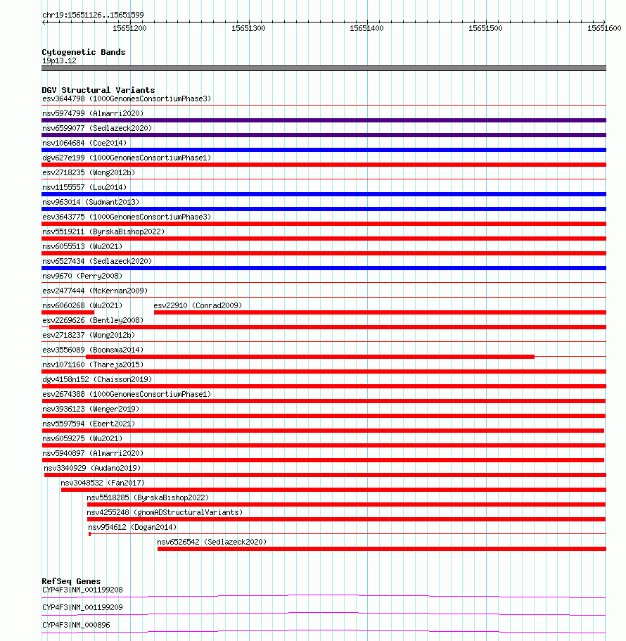 Variant DetailsVariant: esv2674388 | Internal ID | 9940493 | | Landmark | | | Location Information | | | Cytoband | 19p13.12 | | Allele length | | Assembly | Allele length | | hg38 | 474 | | hg19 | 474 |