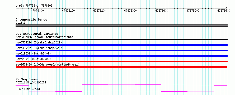 Variant DetailsVariant: esv2674438 | Internal ID | 9940543 | | Landmark | | | Location Information | | | Cytoband | 2p16.3 | | Allele length | | Assembly | Allele length | | hg38 | 680 | | hg19 | 680 |