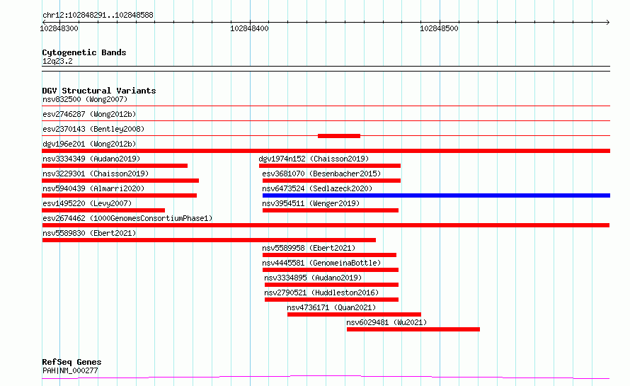 Variant DetailsVariant: esv2674462| Internal ID | 9940567 | | Landmark | | | Location Information | | | Cytoband | 12q23.2 | | Allele length | | Assembly | Allele length | | hg38 | 298 | | hg19 | 298 |