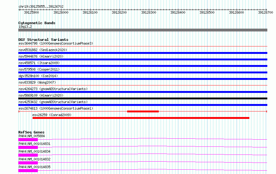 Variant DetailsVariant: esv2674613 | Internal ID | 9940718 | | Landmark | | | Location Information | | | Cytoband | 19q13.2 | | Allele length | | Assembly | Allele length | | hg38 | 848 | | hg19 | 848 |