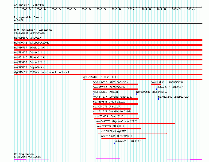 Variant DetailsVariant: esv2675118 | Internal ID | 9941223 | | Landmark | | | Location Information | | | Cytoband | 4p16.3 | | Allele length | | Assembly | Allele length | | hg38 | 1248 | | hg19 | 1248 |