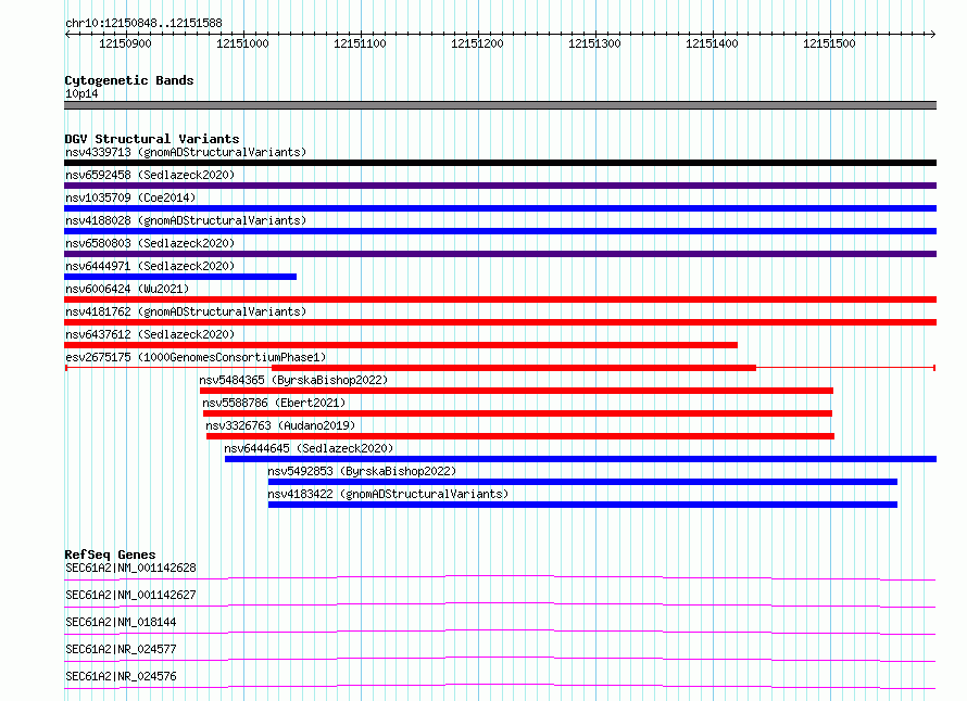 Variant DetailsVariant: esv2675175| Internal ID | 9941280 | | Landmark | | | Location Information | | | Cytoband | 10p14 | | Allele length | | Assembly | Allele length | | hg38 | 741 | | hg19 | 741 |