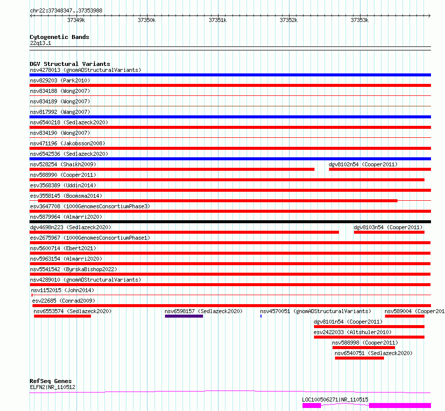 Variant DetailsVariant: esv2675967 | Internal ID | 9942072 | | Landmark | | | Location Information | | | Cytoband | 22q13.1 | | Allele length | | Assembly | Allele length | | hg38 | 5642 | | hg19 | 5641 |