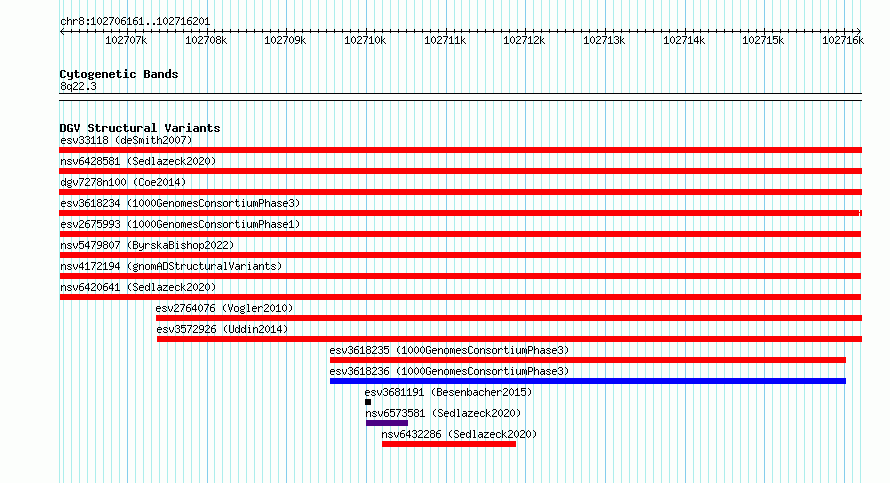 Variant DetailsVariant: esv2675993| Internal ID | 9942098 | | Landmark | | | Location Information | | | Cytoband | 8q22.3 | | Allele length | | Assembly | Allele length | | hg38 | 10041 | | hg19 | 10041 |