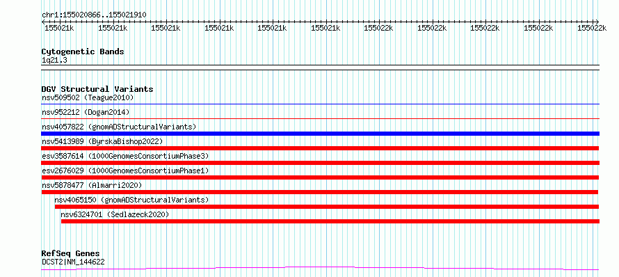 Variant DetailsVariant: esv2676029| Internal ID | 9942134 | | Landmark | | | Location Information | | | Cytoband | 1q21.3 | | Allele length | | Assembly | Allele length | | hg38 | 1045 | | hg19 | 1045 |