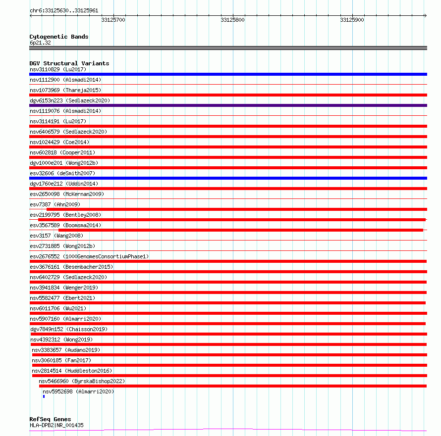 Variant DetailsVariant: esv2676552 | Internal ID | 9942657 | | Landmark | | | Location Information | | | Cytoband | 6p21.32 | | Allele length | | Assembly | Allele length | | hg38 | 332 | | hg19 | 332 |