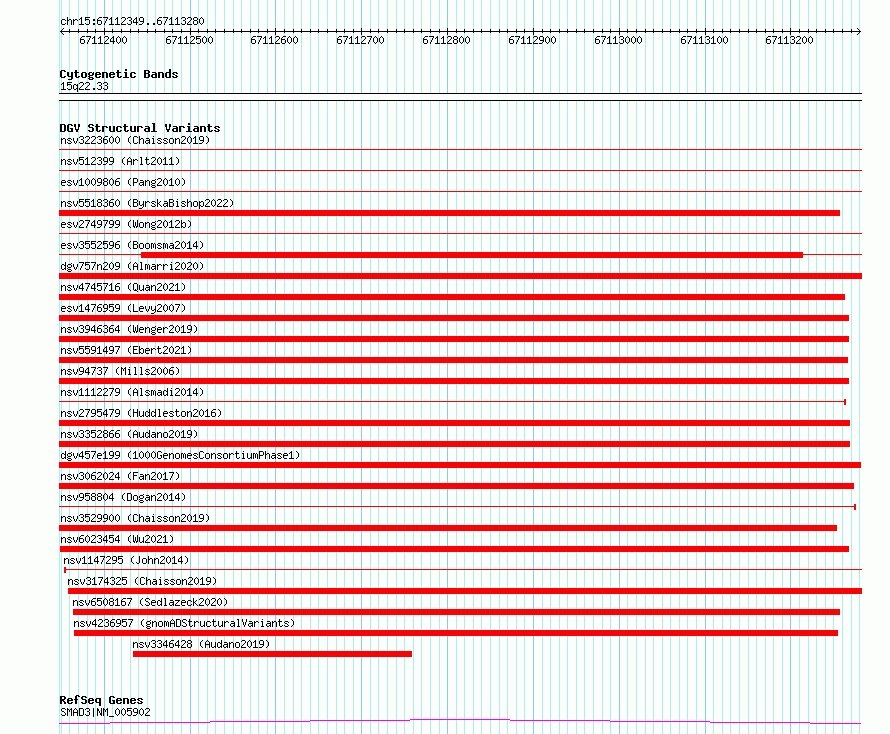 Variant DetailsVariant: esv2676792 | Internal ID | 9942897 | | Landmark | | | Location Information | | | Cytoband | 15q22.33 | | Allele length | | Assembly | Allele length | | hg38 | 932 | | hg19 | 932 |