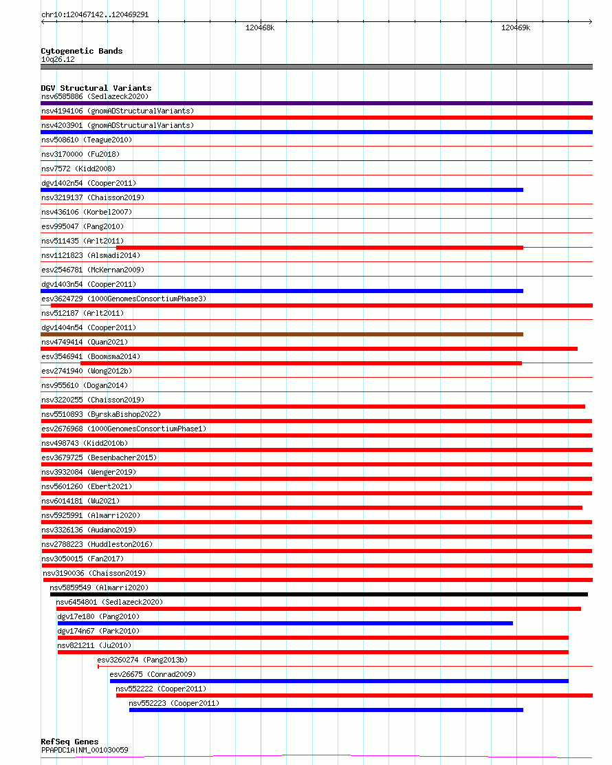 Variant DetailsVariant: esv2676968 | Internal ID | 9943073 | | Landmark | | | Location Information | | | Cytoband | 10q26.12 | | Allele length | | Assembly | Allele length | | hg38 | 2150 | | hg19 | 2150 |