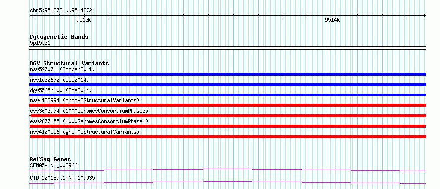 Variant DetailsVariant: esv2677155| Internal ID | 9596574 | | Landmark | | | Location Information | | | Cytoband | 5p15.31 | | Allele length | | Assembly | Allele length | | hg38 | 1592 | | hg19 | 1592 |