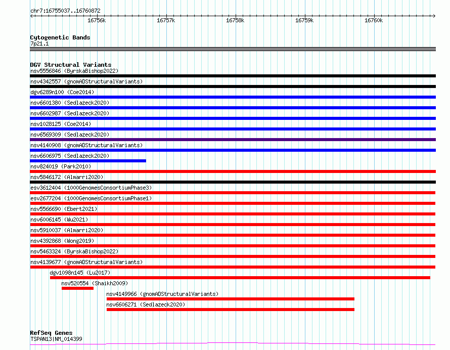 Variant DetailsVariant: esv2677204| Internal ID | 9943309 | | Landmark | | | Location Information | | | Cytoband | 7p21.1 | | Allele length | | Assembly | Allele length | | hg38 | 5836 | | hg19 | 5836 |