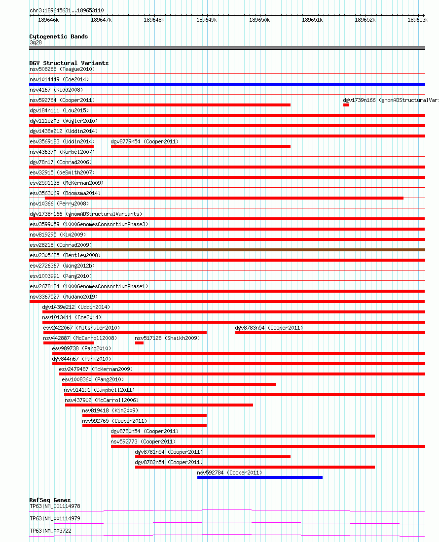Variant DetailsVariant: esv2678134 | Internal ID | 9597553 | | Landmark | | | Location Information | | | Cytoband | 3q28 | | Allele length | | Assembly | Allele length | | hg38 | 7480 | | hg19 | 7480 |