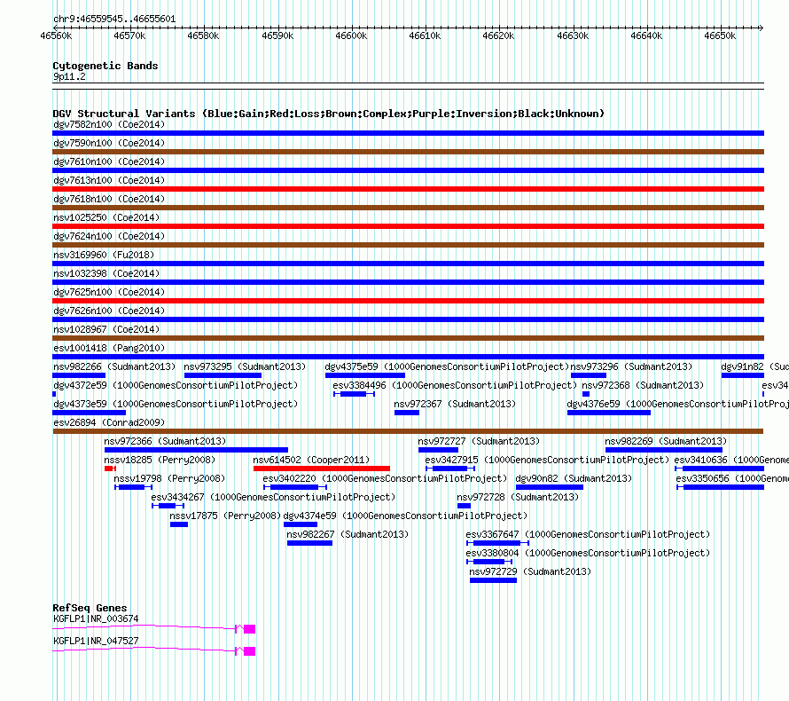 Variant DetailsVariant: esv26894 | Internal ID | 11390813 | | Landmark | | | Location Information | | | Cytoband | 9p11.2 | | Allele length | | Assembly | Allele length | | hg38 | 96057 | | hg19 | 96057 | | hg18 | 96057 |