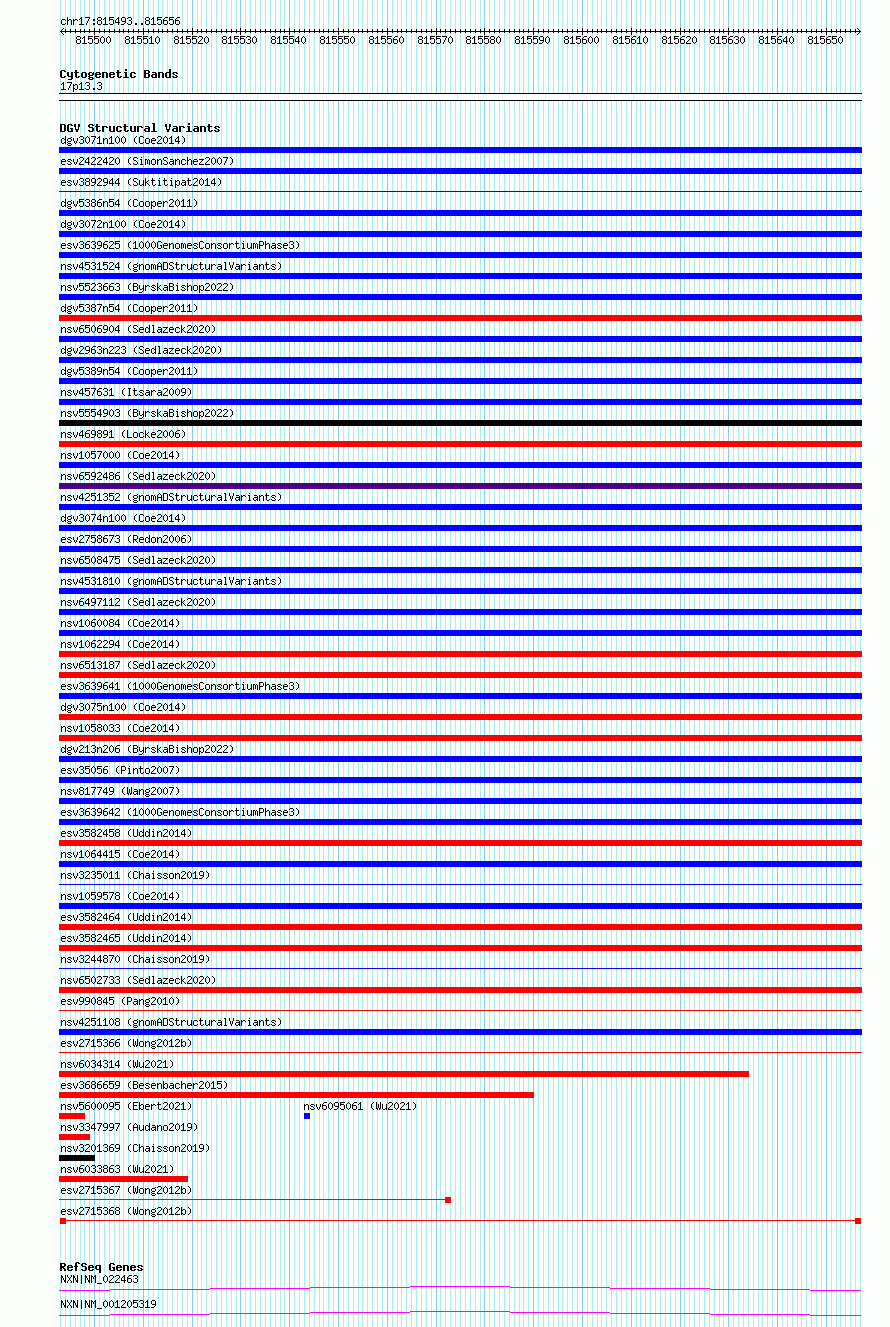 Variant DetailsVariant: esv2715368| Internal ID | 10299004 | | Landmark | | | Location Information | | | Cytoband | 17p13.3 | | Allele length | | Assembly | Allele length | | hg38 | 164 | | hg19 | 164 |