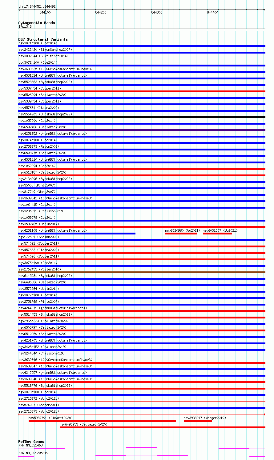Variant DetailsVariant: esv2715373| Internal ID | 10299009 | | Landmark | | | Location Information | | | Cytoband | 17p13.3 | | Allele length | | Assembly | Allele length | | hg38 | 441 | | hg19 | 441 |