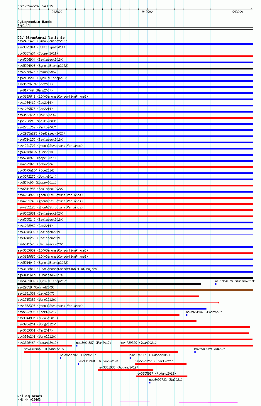 Variant DetailsVariant: esv2715390| Internal ID | 10299026 | | Landmark | | | Location Information | | | Cytoband | 17p13.3 | | Allele length | | Assembly | Allele length | | hg38 | 260 | | hg19 | 260 |