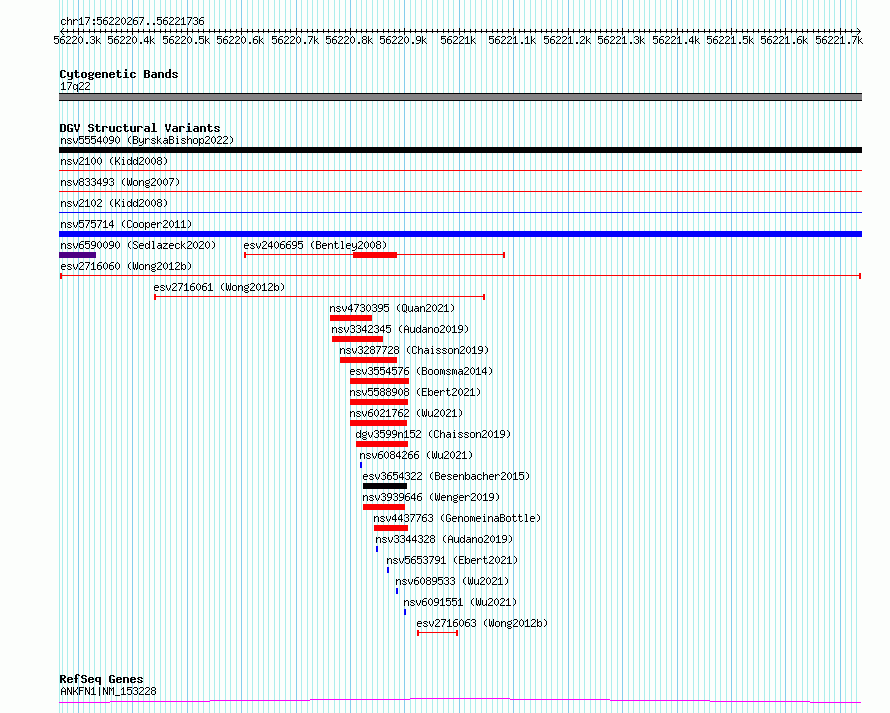 Variant DetailsVariant: esv2716060 | Internal ID | 10299696 | | Landmark | | | Location Information | | | Cytoband | 17q22 | | Allele length | | Assembly | Allele length | | hg38 | 1470 | | hg19 | 1470 |
