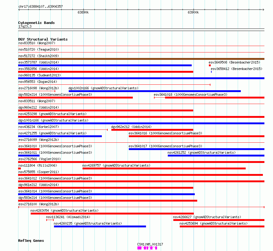 Variant DetailsVariant: esv2716100 | Internal ID | 9950387 | | Landmark | | | Location Information | | | Cytoband | 17q23.3 | | Allele length | | Assembly | Allele length | | hg38 | 22251 | | hg19 | 22251 |