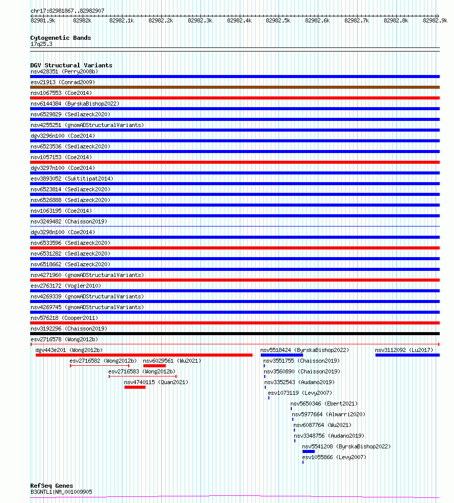 Variant DetailsVariant: esv2716578| Internal ID | 10300214 | | Landmark | | | Location Information | | | Cytoband | 17q25.3 | | Allele length | | Assembly | Allele length | | hg38 | 1041 | | hg19 | 1041 |