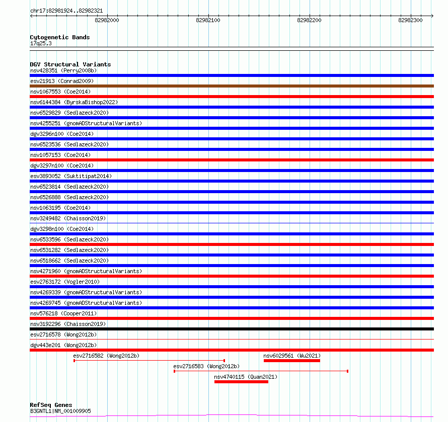 Variant DetailsVariant: esv2716580| Internal ID | 10300216 | | Landmark | | | Location Information | | | Cytoband | 17q25.3 | | Allele length | | Assembly | Allele length | | hg38 | 398 | | hg19 | 398 |