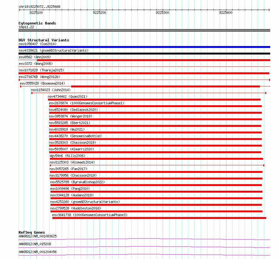 Variant DetailsVariant: esv2716768 | Internal ID | 10300404 | | Landmark | | | Location Information | | | Cytoband | 18p11.22 | | Allele length | | Assembly | Allele length | | hg38 | 397 | | hg19 | 397 |