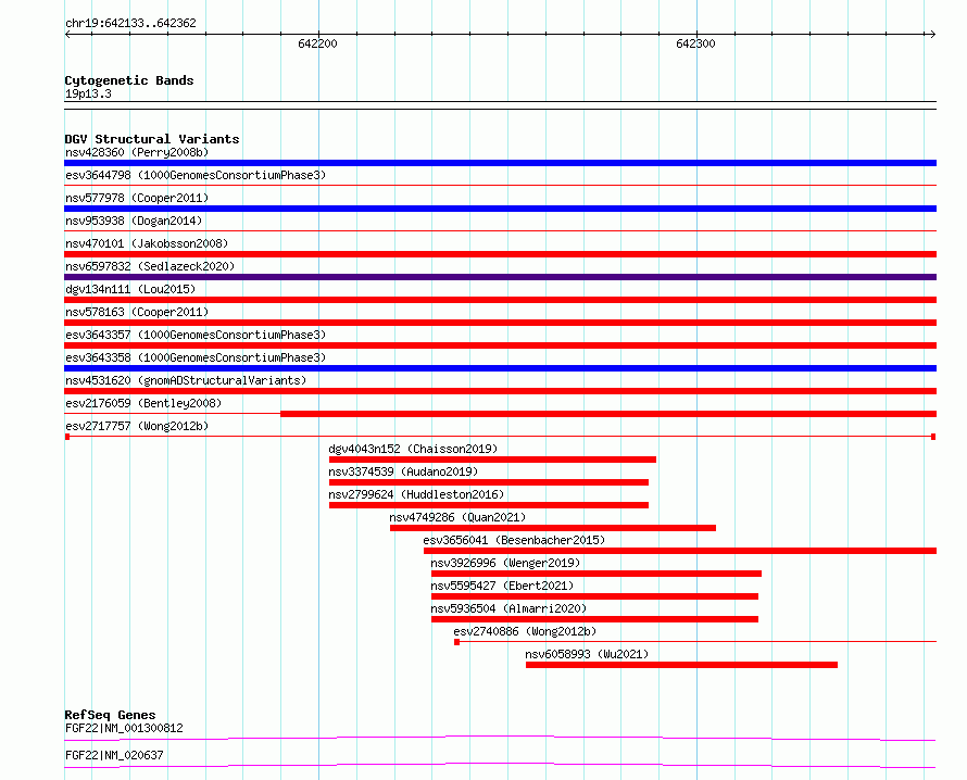 Variant DetailsVariant: esv2717757| Internal ID | 10301393 | | Landmark | | | Location Information | | | Cytoband | 19p13.3 | | Allele length | | Assembly | Allele length | | hg38 | 230 | | hg19 | 230 |
