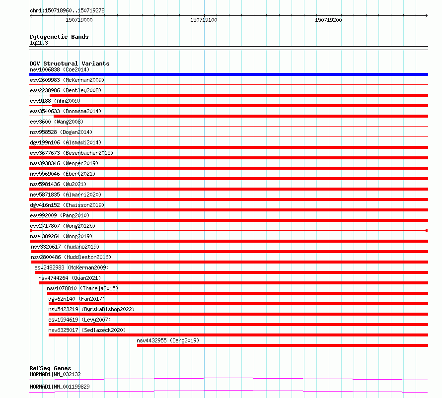 Variant DetailsVariant: esv2717807 | Internal ID | 10301443 | | Landmark | | | Location Information | | | Cytoband | 1q21.3 | | Allele length | | Assembly | Allele length | | hg38 | 319 | | hg19 | 319 |