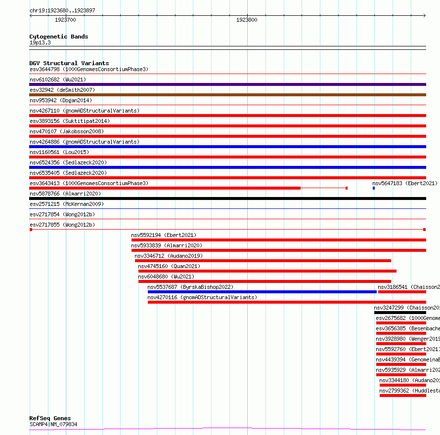 Variant DetailsVariant: esv2717855| Internal ID | 10301491 | | Landmark | | | Location Information | | | Cytoband | 19p13.3 | | Allele length | | Assembly | Allele length | | hg38 | 218 | | hg19 | 218 |