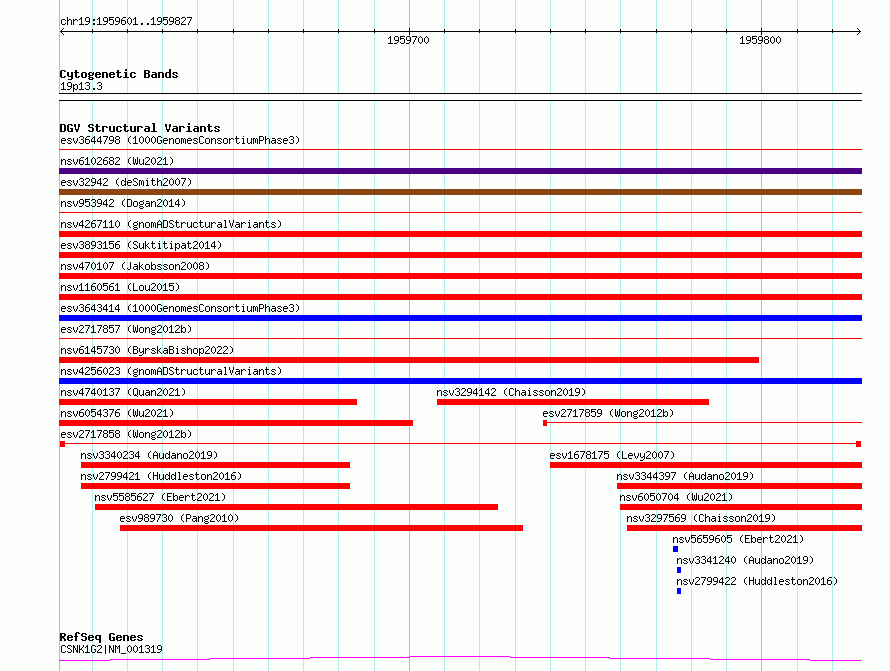 Variant DetailsVariant: esv2717858| Internal ID | 10301494 | | Landmark | | | Location Information | | | Cytoband | 19p13.3 | | Allele length | | Assembly | Allele length | | hg38 | 227 | | hg19 | 227 |