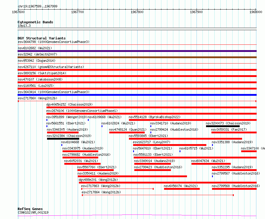 Variant DetailsVariant: esv2717860| Internal ID | 10301496 | | Landmark | | | Location Information | | | Cytoband | 19p13.3 | | Allele length | | Assembly | Allele length | | hg38 | 401 | | hg19 | 401 |