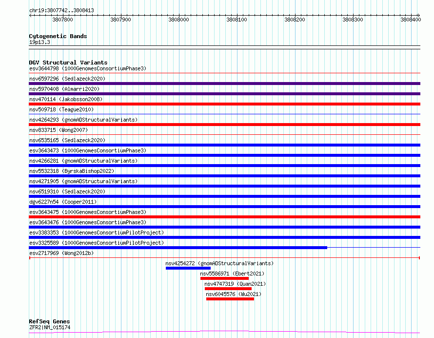 Variant DetailsVariant: esv2717969| Internal ID | 10301605 | | Landmark | | | Location Information | | | Cytoband | 19p13.3 | | Allele length | | Assembly | Allele length | | hg38 | 672 | | hg19 | 672 |