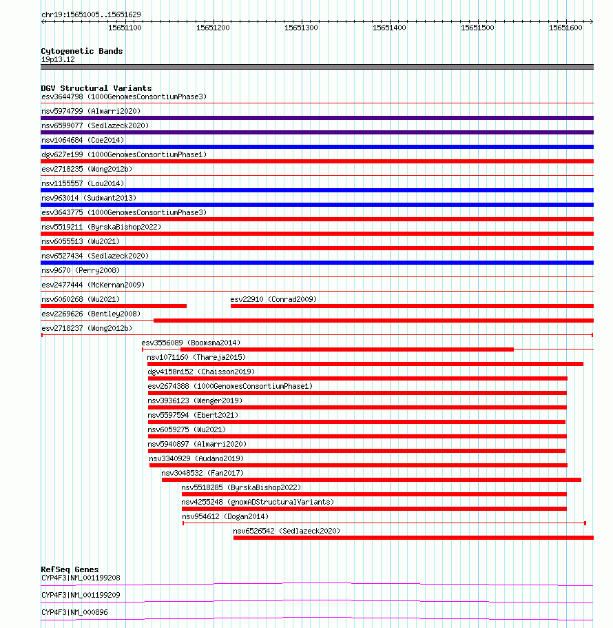 Variant DetailsVariant: esv2718237 | Internal ID | 10301873 | | Landmark | | | Location Information | | | Cytoband | 19p13.12 | | Allele length | | Assembly | Allele length | | hg38 | 625 | | hg19 | 625 |
