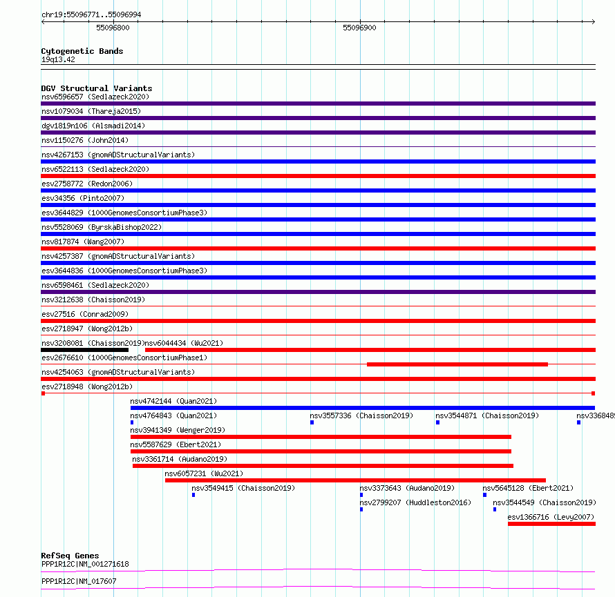 Variant DetailsVariant: esv2718948| Internal ID | 10302584 | | Landmark | | | Location Information | | | Cytoband | 19q13.42 | | Allele length | | Assembly | Allele length | | hg38 | 224 | | hg19 | 224 |