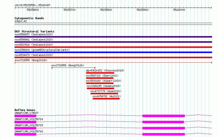 Variant DetailsVariant: esv2718958| Internal ID | 10302594 | | Landmark | | | Location Information | | | Cytoband | 19q13.42 | | Allele length | | Assembly | Allele length | | hg38 | 538 | | hg19 | 538 |