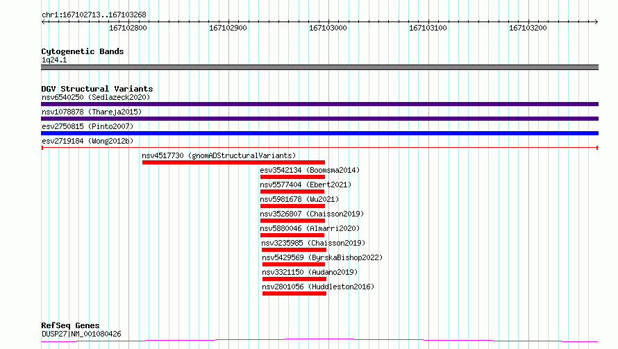 Variant DetailsVariant: esv2719184| Internal ID | 10302820 | | Landmark | | | Location Information | | | Cytoband | 1q24.1 | | Allele length | | Assembly | Allele length | | hg38 | 556 | | hg19 | 556 |
