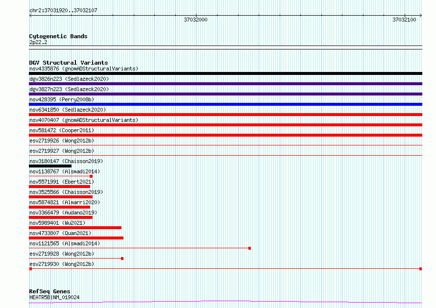 Variant DetailsVariant: esv2719930| Internal ID | 10303566 | | Landmark | | | Location Information | | | Cytoband | 2p22.2 | | Allele length | | Assembly | Allele length | | hg38 | 188 | | hg19 | 188 |