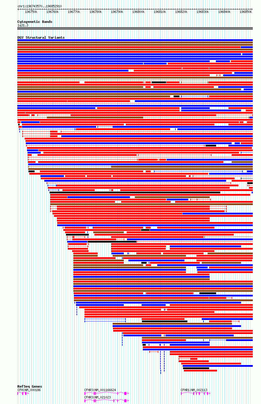 | | Variant Type | CNV deletion | | Copy Number | | | Allele State | | | Allele Origin | | | Probe Count | | | Validation Flag | | | Merged Status | M | | Merged Variants | dgv42e201 | | Supporting Variants | essv6686275, essv6941953, essv6844002, essv6929209, essv6785138, essv6747904, essv6742261, essv6686274, essv6950699, essv6797603, essv6707385, essv6917581, essv6817876, essv6961780, essv6714387, essv6745058, essv6738948, essv6954977, essv6874824, essv6686277, essv6954976, essv6892455, essv6821323, essv6707383, essv6941955, essv6817887, essv6781025, essv6729761, essv6669190, essv6722134, essv6950698, essv6703979, essv6946627, essv6844003, essv6968088, essv6773583, essv6666981, essv6750721, essv6816767, essv6714386, essv6801738, essv6696721, essv6753625, essv6675345, essv6836321, essv6844004, essv6749843, essv6950697, essv6941954, essv6946628, essv6738949, essv6898730, essv6895964, essv6889142, essv6886092, essv6797604, essv6961781, essv6921883, essv6917930, essv6769663, essv6764270, essv6853455, essv6864139, essv6777069, essv6769662, essv6877772, essv6810598, essv6933452, essv6886091, essv6738947, essv6670820, essv6692925, essv6868833, essv6917580, essv6878020, essv6813293, essv6807497, essv6697092, essv6921882, essv6689385, essv6917917, essv6847251, essv6733594, essv6853456, essv6707384, essv6697091, essv6759174, essv6675346, essv6968087, essv6933451, essv6761944, essv6880538, essv6874825, essv6736093 | | Samples | SSM100, SSM036, SSM008, SSM083, SSM027, SSM024, SSM075, SSM045, SSM079, SSM065, SSM087, SSM038, SSM097, SSM073, SSM093, SSM050, SSM002, SSM041, SSM057, SSM023, SSM058, SSM028, SSM092, SSM090, SSM021, SSM047, SSM018, SSM069, SSM061, SSM096, SSM062, SSM026, SSM089, SSM017, SSM035, SSM094, SSM032, SSM003, SSM031, SSM067, SSM001, SSM086, SSM066, SSM006, SSM085, SSM068, SSM040, SSM072, SSM020, SSM078, SSM053, SSM037, SSM077, SSM010, SSM055, SSM025, SSM099, SSM043, SSM052, SSM098, SSM049, SSM056, SSM030, SSM063, SSM012 | | Known Genes | CFH, CFHR1, CFHR3 | | Method | Sequencing | | Analysis | Breakdancer:4 times standard deviation,VariationHunter:4 times standard deviation and at least 3 supportting reads | | Platform | Illumina HiSeq 2000 | | Comments | | | Reference | Wong_et_al_2012b | | Pubmed ID | 23290073 | | Accession Number(s) | esv2721006