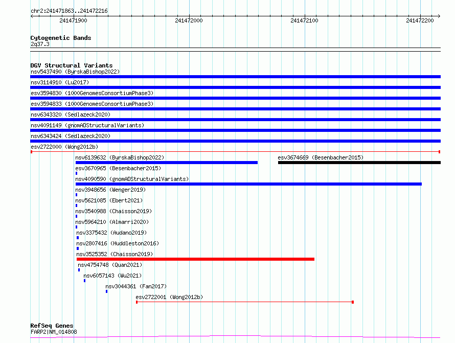 Variant DetailsVariant: esv2722000| Internal ID | 10305636 | | Landmark | | | Location Information | | | Cytoband | 2q37.3 | | Allele length | | Assembly | Allele length | | hg38 | 354 | | hg19 | 354 |