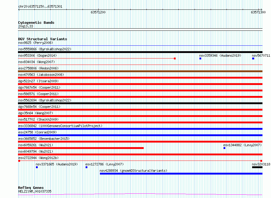 Variant DetailsVariant: esv2722944| Internal ID | 10306580 | | Landmark | | | Location Information | | | Cytoband | 20q13.33 | | Allele length | | Assembly | Allele length | | hg38 | 152 | | hg19 | 152 |